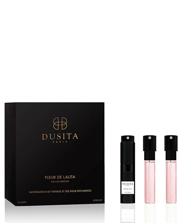 Парфюмерная вода Fleur de Lalita в объёме 7,5 мл представлена в виде Travel Spray — компактного флакона для путешествий. Этот набор поставляется в элегантной коробке и включает в себя два сменных блока по 7,5 мл каждый. В результате общий объём набора составляет 22,5 мл (7,5 мл во флаконе и два дополнительных блока по 7,5 мл). Это удобный формат для путешествий или использования в дороге, при этом сохраняя стиль и элегантность упаковки.